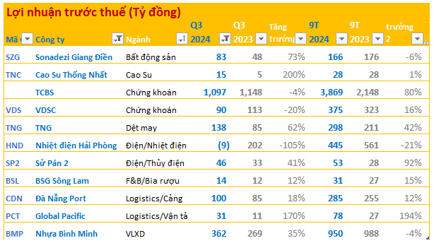 Những công ty đã công bố BCTC quý 3/2024 tính đến sáng 17/10: