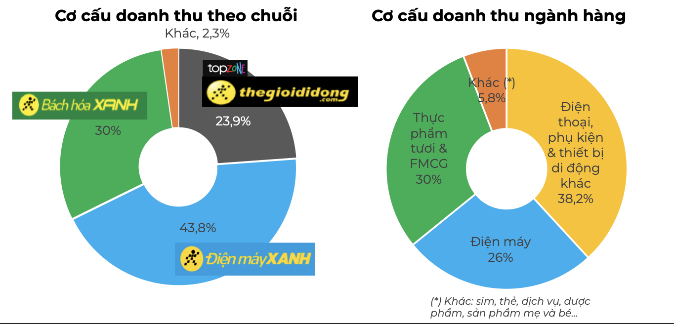 Hầu hết các ngành hàng đều duy trì đà tăng trưởng dương trong khoảng 10 - 50%, trong đó các nhóm sản phẩm chủ lực như điện thoại, máy tính bảng, điện lạnh và gia dụng đạt mức tăng trưởng hai chữ số. Cả hai chuỗi này đang có tổng cộng 3.020 cửa hàng (Thế Giới Di Động có 1.012 cửa hàng và Điện Máy Xanh có 2.008 cửa hàng).