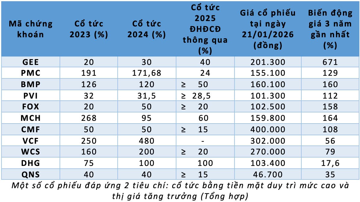 Không ít doanh nghiệp xây dựng được mô hình tăng trưởng kép - vừa duy trì cổ tức tiền mặt hấp dẫn, vừa tạo ra sự gia tăng rõ nét về quy mô và giá trị doanh nghiệp.