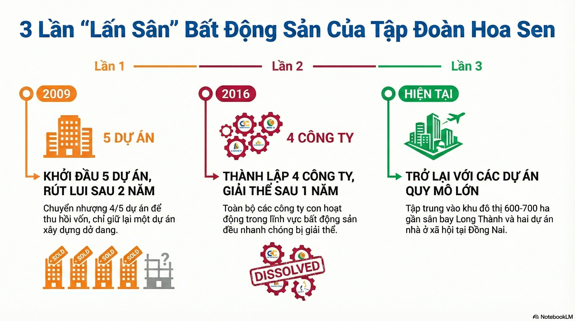 Thực tế cho thấy, bất động sản không phải là “cuộc chơi mới” với Hoa Sen. Trái lại, đây là mảng kinh doanh mà Tập đoàn đã nhiều lần thử sức, song đều kết thúc trong trạng thái dang dở. Chính vì vậy, lần tái xuất gần đây của Hoa Sen đang đặt ra câu hỏi: liệu đây chỉ là một vòng lặp cũ, hay là một chiến lược đã được tính toán kỹ lưỡng hơn trong bối cảnh mới?