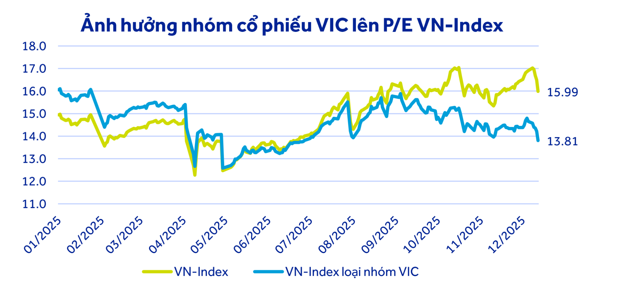 Trong Báo cáo Chiến lược 2026: Kiến tạo vị thế vừa phát hành, các chuyên gia Phòng Phân tích và Chiến lược thị trường, Công ty Chứng khoán ACB (ACBS) đánh giá, năm 2025 kết thúc, VN-Index tăng 40,87% so với đầu năm, tuy nhiên, đà tăng của VN-Index có sự đóng góp chủ yếu từ một vài cổ phiếu có vốn hóa lớn và thiếu vắng sự lan tỏa sang toàn thị trường. Đà tăng của một vài cổ phiếu lớn đã khiến định giá của VN-Index cuối năm 2025 ở mức 17,3 lần. Trong khi trên thực tế, định giá của VN-Index nếu loại trừ những ảnh hưởng đặc biệt thì chỉ còn 14,6 lần, thấp hơn định giá trung vị 5 năm.