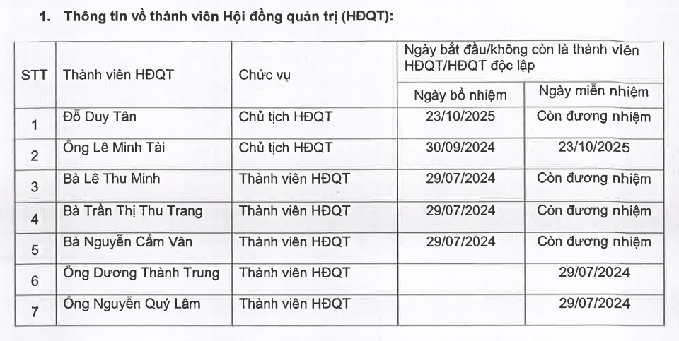 | Danh sách thành viên Hội đồng quản trị Saigon Capital và thời điểm bổ nhiệm/miễn nhiệm. Nguồn: Báo cáo quản trị công ty của Saigon Capital. |