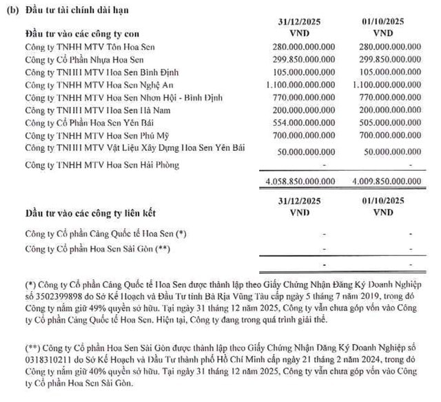 | Hoa Sen vẫn chưa góp vốn vào Công ty cổ phần Hoa Sen Sài Gòn tại thời điểm cuối năm 2025 |