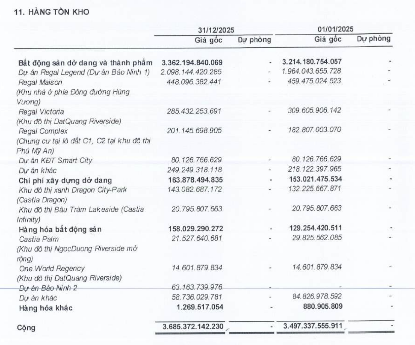 | Dự án Regal Legend đang có tồn kho lớn nhất tại thời điểm 31/12/2025. |