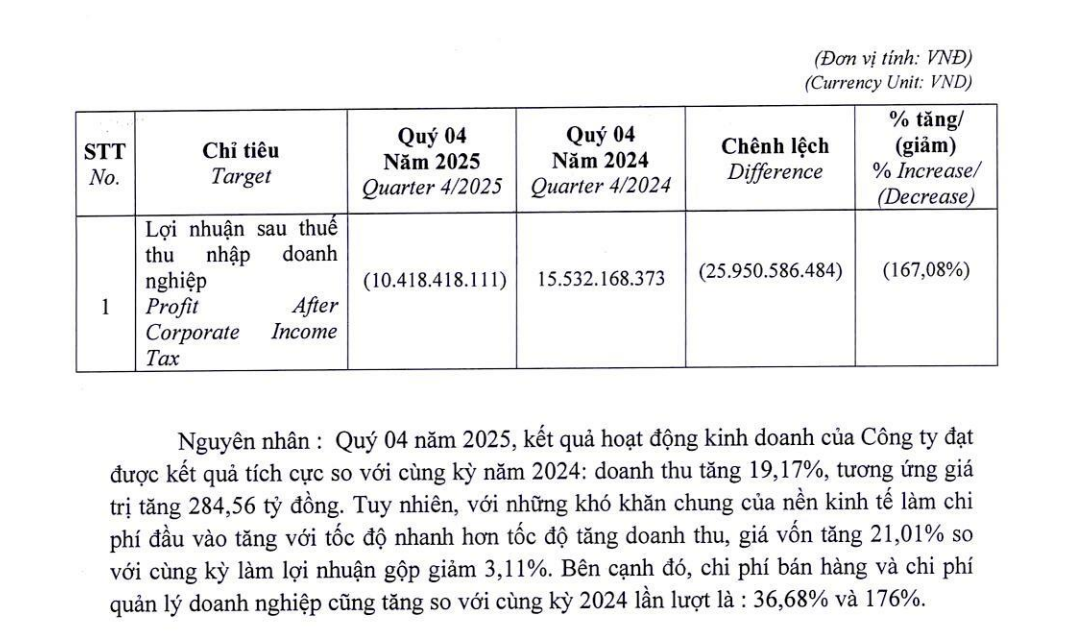 Kết quả, Vietravel ghi nhận lỗ sau thuế hơn 10 tỷ đồng trong quý IV/2025, đảo chiều so với mức lãi 15 tỷ đồng cùng kỳ năm trước. Đây cũng là quý đầu tiên công ty báo lỗ kể từ quý II/2022.