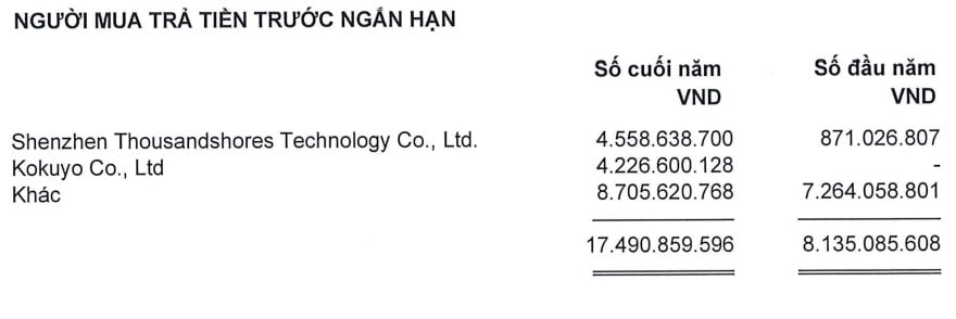 Một điểm đáng chú ý trong báo cáo tài chính quý IV/2025 là việc Kokuyo Co., Ltd xuất hiện trong danh mục đối tác thương mại. Tại ngày 31/12/2025, Thiên Long ghi nhận khoản mục người mua trả tiền trước ngắn hạn từ Kokuyo với giá trị hơn 4,2 tỷ đồng, trong khi đầu năm khoản mục này chưa xuất hiện.![]() |