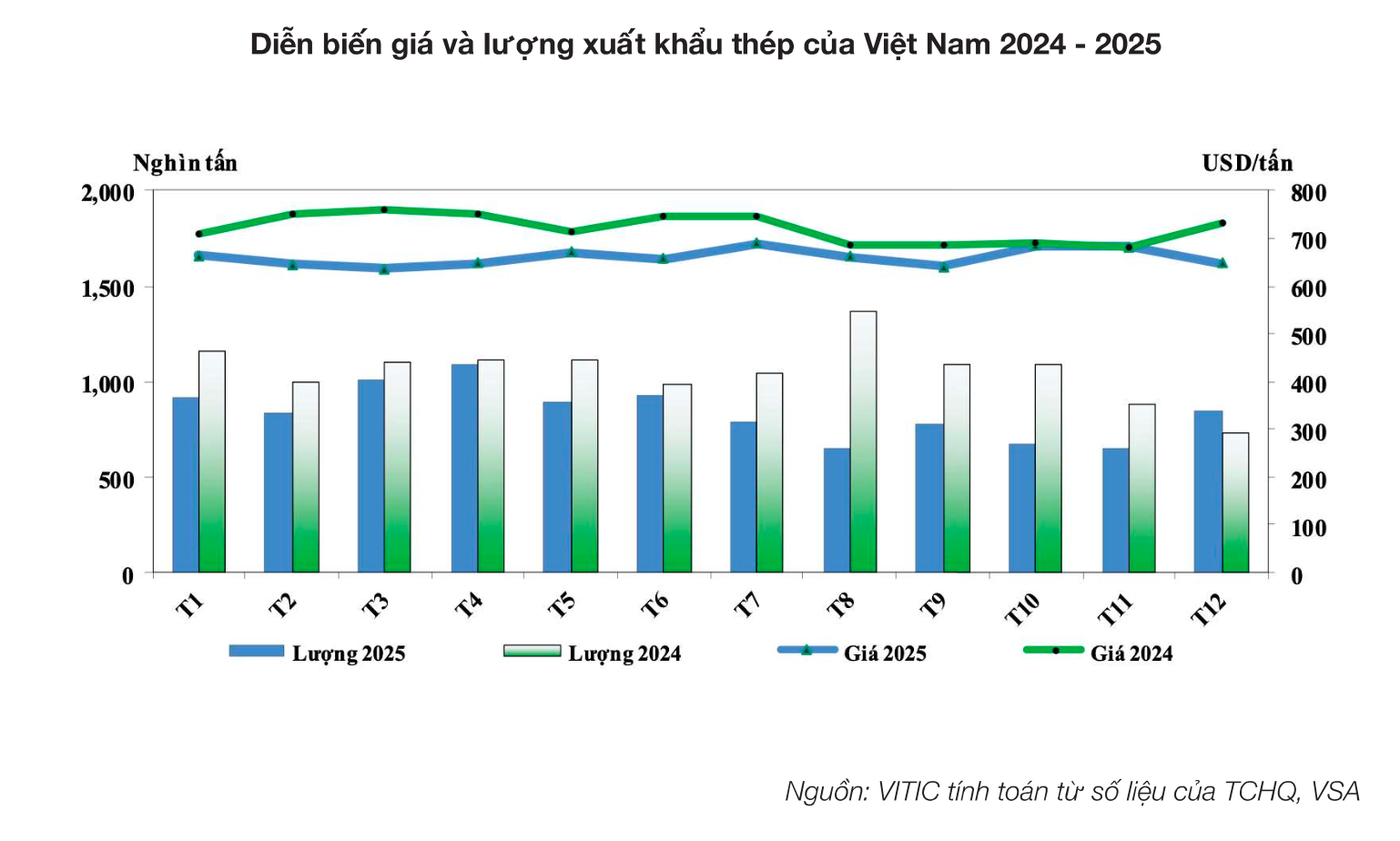 Giá thép quốc tế, theo phân tích từ VSA, chính là nguyên nhân khiến kim ngạch sụt giảm. Tổng lượng xuất khẩu cả năm đạt hơn 10,06 triệu tấn, trị giá hơn 6,6 tỷ USD. Con số này giảm hơn 20% về lượng và 27% về giá trị so với cùng kỳ năm 2024.