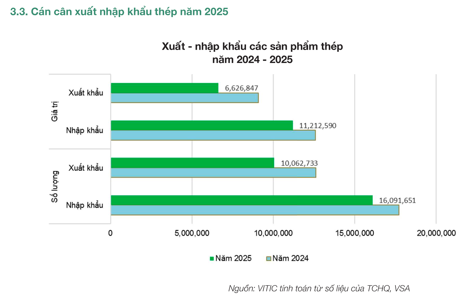 Tuy nhiên, việc xuất khẩu sụt giảm mạnh cũng lý giải vì sao thị trường nội địa và nhập khẩu thép vẫn chịu áp lực lớn trong cùng giai đoạn. Điều này đặt ra thách thức dài hạn cho ngành thép Việt Nam trong việc đa dạng hóa thị trường xuất khẩu, nâng cao giá trị sản phẩm và giảm phụ thuộc vào một số thị trường chủ lực.