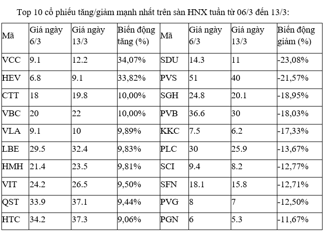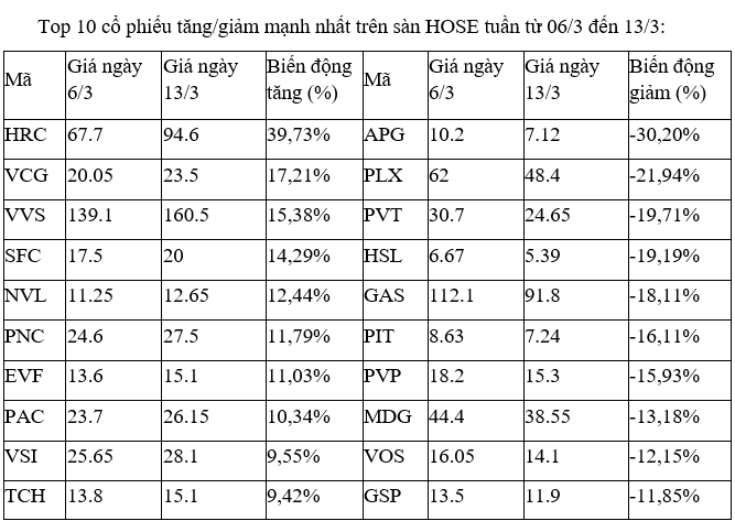 | Top 10 cổ phiếu tăng/giảm mạnh nhất tuần: Cổ phiếu dầu khí hạ nhiệt |