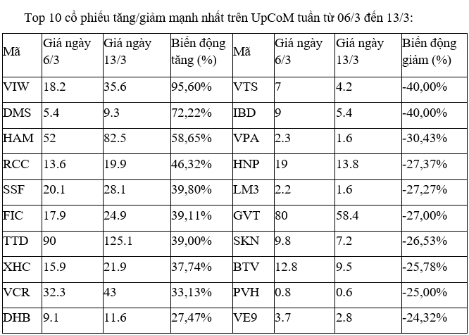 Trên UpCoM, cổ phiếu VIW của Tổng CTCP Đầu tư Nước và Môi trường Việt Nam, một Công ty con của Bộ Xây dựng đã dẫn đầu đà tăng, sau khi có những biến động mới về nhân sự trong bộ máy lãnh đạo cấp cao nhất, gần nhất là việc bầu ông Tô Dũng làm Chủ tịch Hội đồng quản trị.