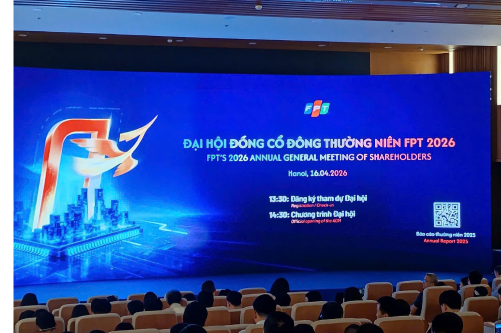 Chiều 16/4/2026, CTCP FPT (FPT) tổ chức Đại hội đồng cổ đông thường niên tại tòa nhà FPT Tower, số 10 Phạm Văn Bạch, Cầu Giấy, Hà Nội.