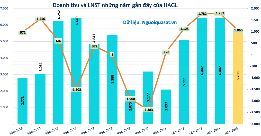 Về kết quả kinh doanh, năm 2025, HAGL ghi nhận 7.432 tỷ đồng doanh thu, vượt gần 35% kế hoạch năm. Lợi nhuận sau thuế đạt 2.240 tỷ đồng, gấp đôi chỉ tiêu đề ra.