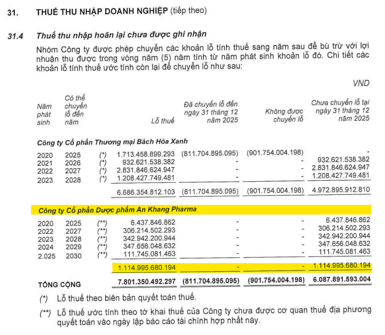 Theo ghi nhận, 5 năm gần nhất, chuỗi này đã ghi nhận tổng lỗ 1.115 tỷ đồng. Với riêng Thế Giới Di Động, trong tổng khoản lỗ hơn 7.800 tỷ đồng ở hai chuỗi Bách Hóa Xanh và An Khang, MWG còn khoảng 6.000 tỷ đồng lỗ thuế có khả năng chuyển sang các năm sau (lỗ thuế ở An Khang hầu như chưa sử dụng). Điều này tạo dư địa giảm nghĩa vụ thuế nếu các mảng này bắt đầu có lãi.